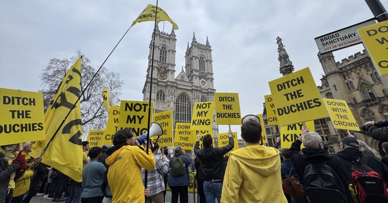 Članovi grupe Republika su u blizini Vestminsterske opatije, gdje je održana služba, uzvikivali antimonarhijske parole i nosili transparent sa sloganom “Ukinite monarhiju”.