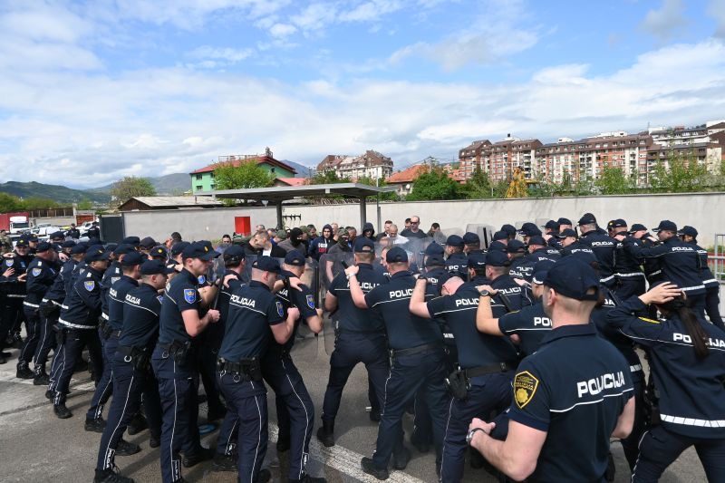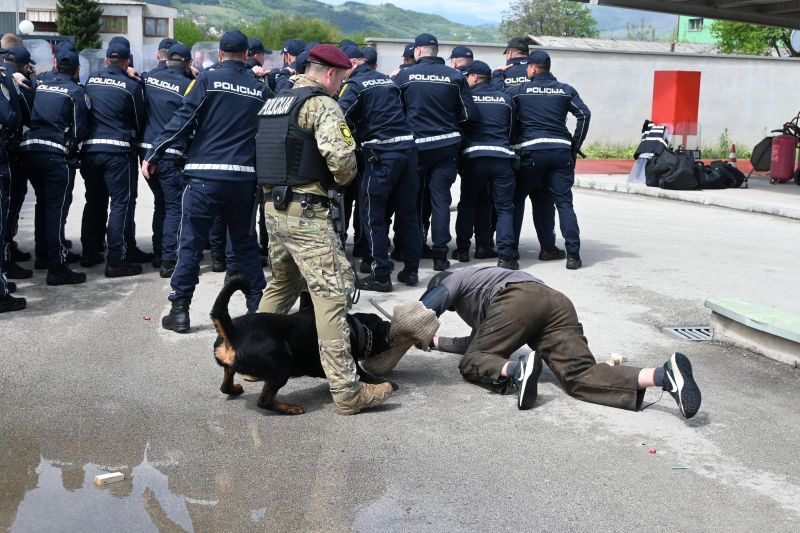 Tokom vježbe je simulirana situacija u slučaju narušavanja javnog reda i mira u većem obimu, izazvana neredimahuliganskih skupina, uz angažovanje službenih pasa.
