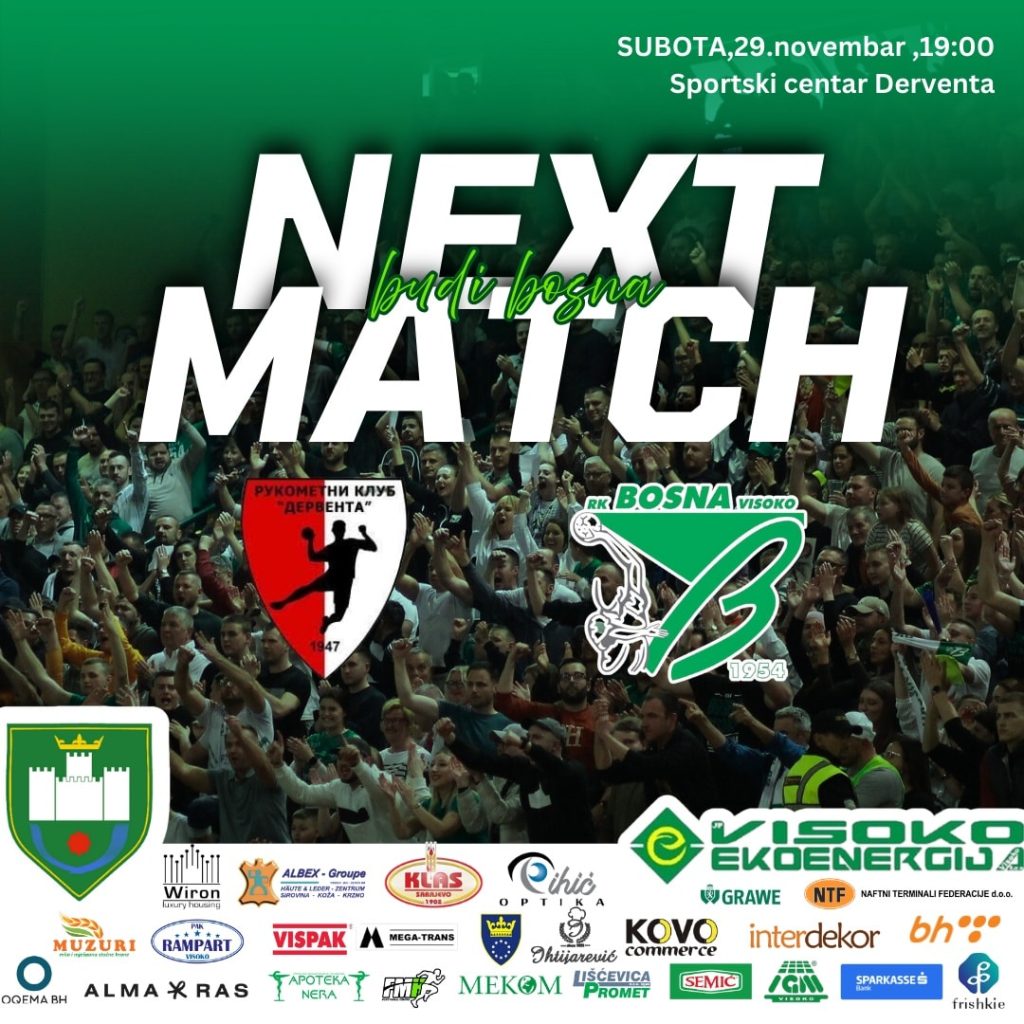 “Nakon pobjede protiv Zrinjskog, u vikendu pred nama očekuje nas još jedan težak duel, protiv još jedne ekipe, koja je kao i Zrinjski i mi, povratnik u elitni rang bh. rukometa. Derventa je kao Bosna osvojila sedam bodova do sad, a na svom terenu je pobijedila Leotar, Goražde i Gračanicu, remizirala je s Konjuhom, a poraz je upisala od dobojske Sloge. Bit će ovo jako težak duel za nas, jer je rival dosta nezgodna i iskusna ekipa, koja posebno na domaćem terenu uvijek igra do kraja. Ali nema sumnje da će naša ekipa u subotu dati sve od sebe da upiše pozitivan rezultat, da ćemo se boriti, igrati do kraja! Susret se igra u subotu, 29. novembra od 19 sati u Sportskoj dvorani u Derventi”, poručili su iz visočkog kluba.
